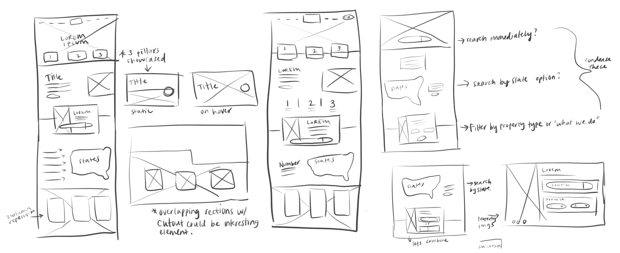 Early Explorations of the home page for TWG, plotting elements of design and layout that aligned with goals & objectives, as well as an exploration into the user experience for the communities filtering.