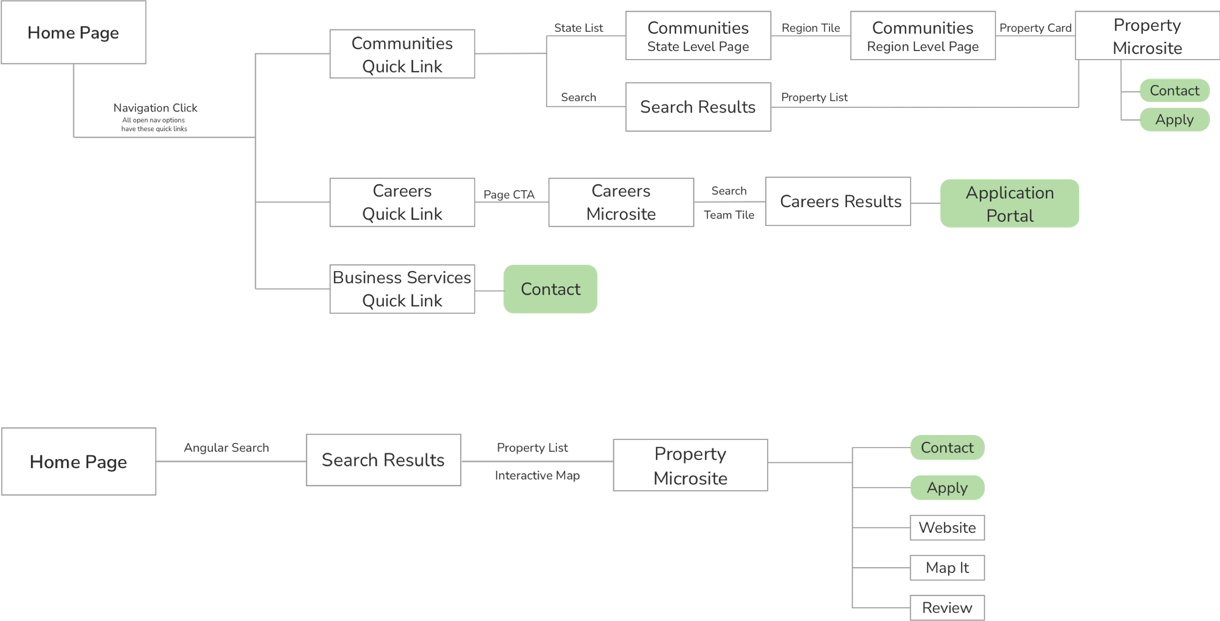 After reviewing the major competitors of Willow Bridge, I identified what others were doing well, and where there were opportunities to streamline experiences. I looked at key functionality features and identified multiple user flows that would be common, originating at the home page and ending with a lead or conversion.