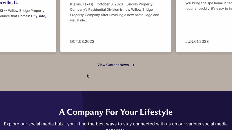 At the end of 2019, Willow Bridge Property Company (then known as Linclon Property Company) and LeaseLabs worked in partnership to rebrand the company and launch LincolnApts.com. Since then, the website has been referenced and looked upon as the gold standard for websites in the multifamily industry. In 2023, Lincoln Property Company rebranded and reached out to LeaseLabs to update their website to reflect their new branding and persona.
